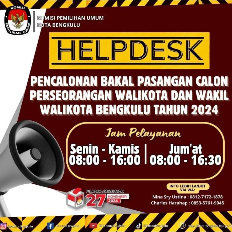 HELPDESK PENCALONAN BAKAL PASANGAN CALON PERSEORANGAN WALIKOTA DAN WAKIL WALIKOTA BENGKULU TAHUN 2024