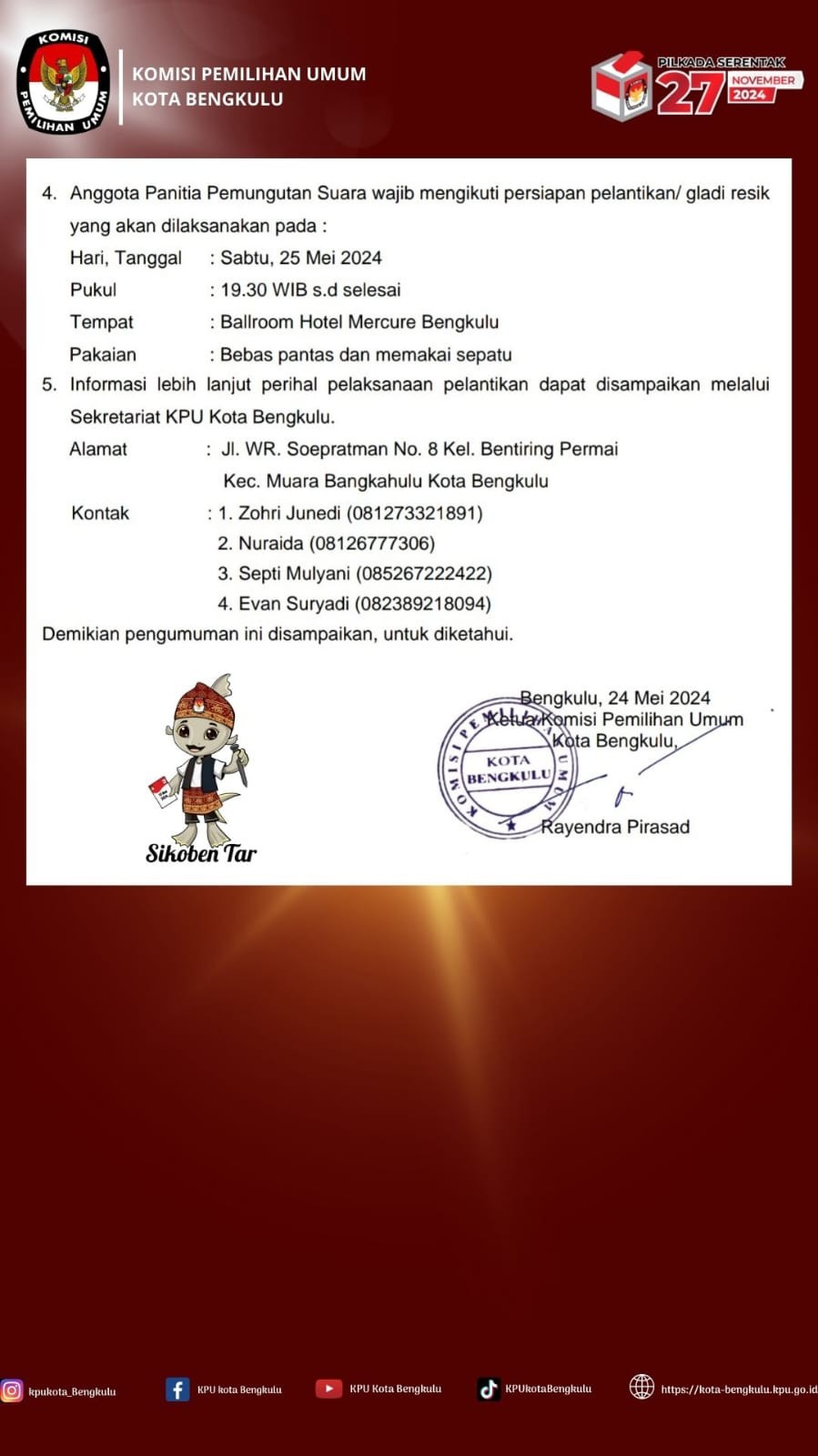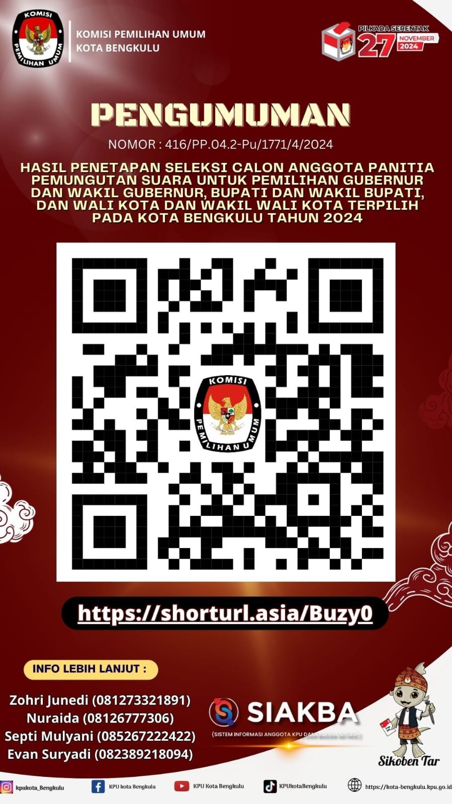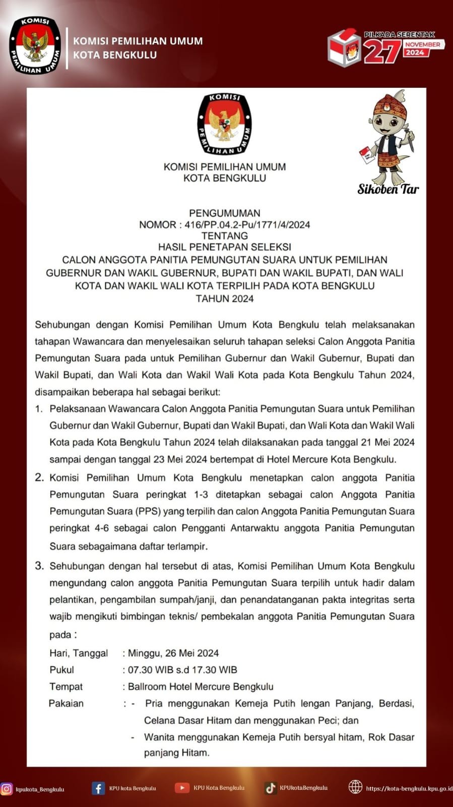 LINK : PENGUMUMAN HASIL PPS WAWANCARA DAN SELEKSI AKHIR PILKADA KOTA BENGKULU TAHUN 2024