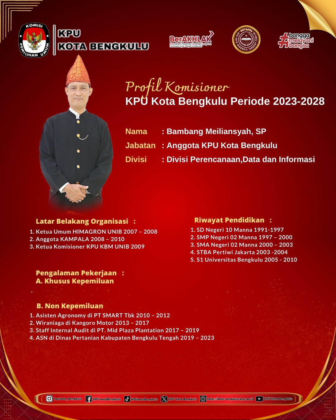 BAMBANG MEILIANSYAH ANGGOTA KPU KOTA BENGKULU DIVISI PERENCANAAN DATA DAN INFORMASI